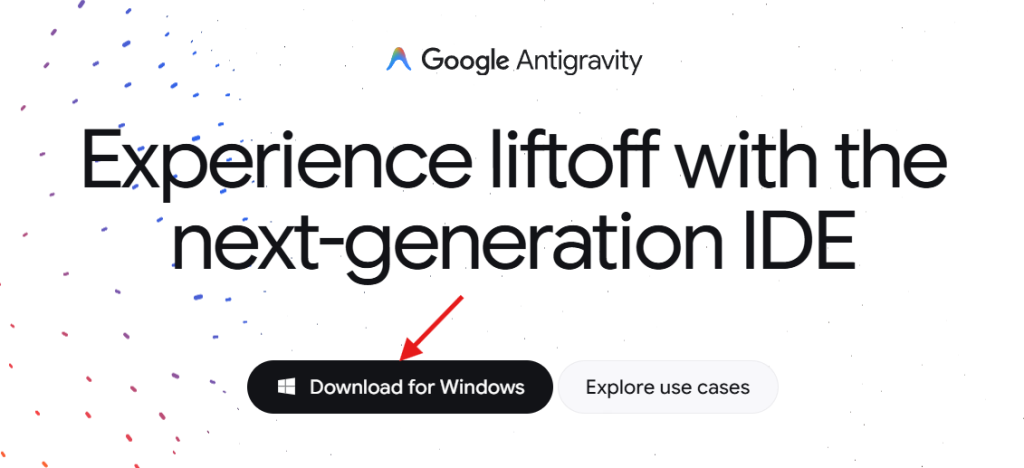 Antigravityの公式サイト( https://antigravity.google/ )を開きます。 - インストーラーのダウンロード