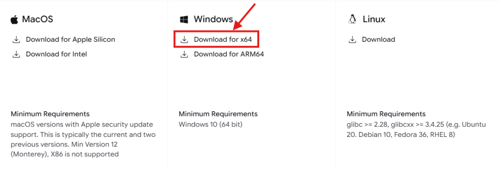 私の場合は「x64」だったので「Download for x64」を選択。