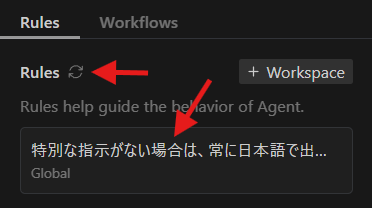 画面のメニューは日本語になりましたが、実は肝心のAI(Agent)が、気を抜くと英語で話しかけてくることがあります。これを防ぐために「私には常に日本語で話してね」というルールをAIに教え込みます。