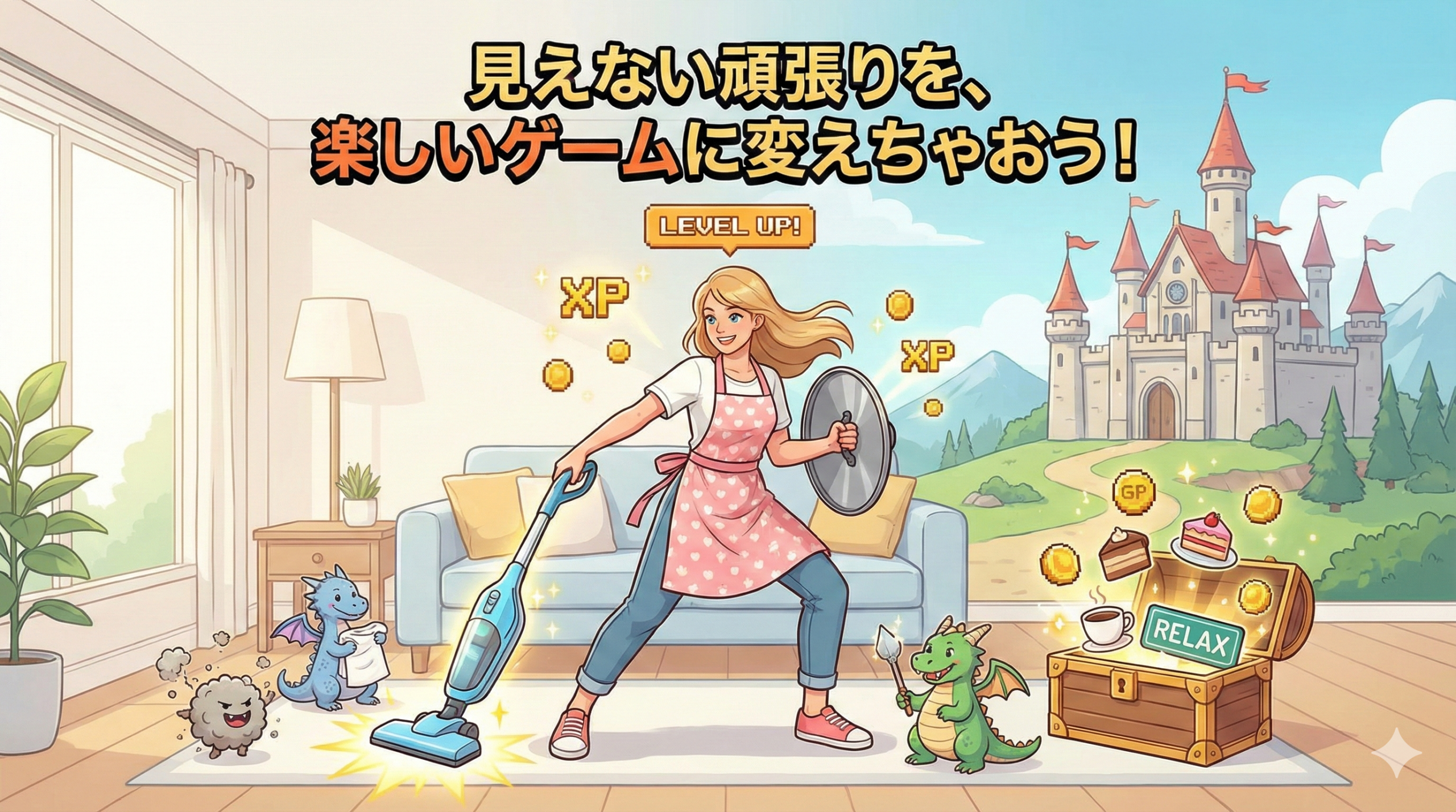 「名もなき家事RPG」を使って、見えない頑張りを可視化し、もっと自分を褒めてあげてくださいね。 さあ、今日も楽しく冒険(家事)に出発しましょう!