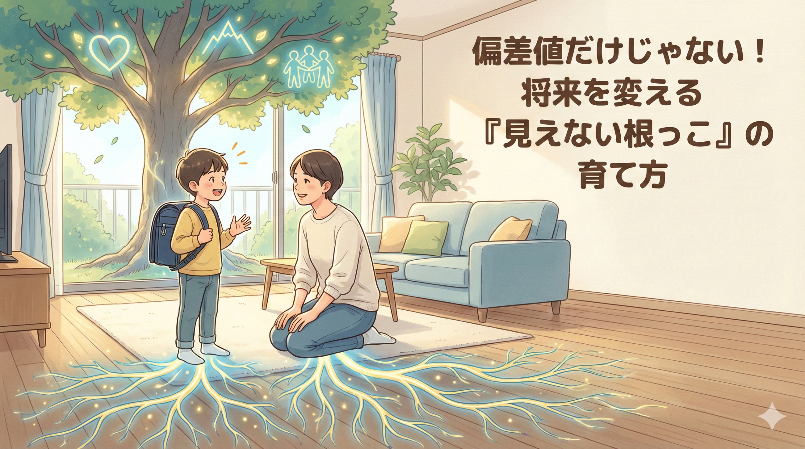 例えるなら、認知能力は「木の幹や枝葉(目に見える成果)」であり、非認知能力はそれを支える「根っこ(目に見えない土台)」です。どれだけ立派な幹(学力)を育てようとしても、根っこ(非認知能力)が貧弱であれば、嵐(社会の荒波)が来たときに耐えることはできません。